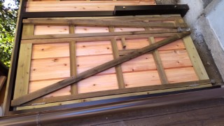 アヤメ張りの板塀を作成しましたので、その横の板戸を大工さんに作ってもらいました。
